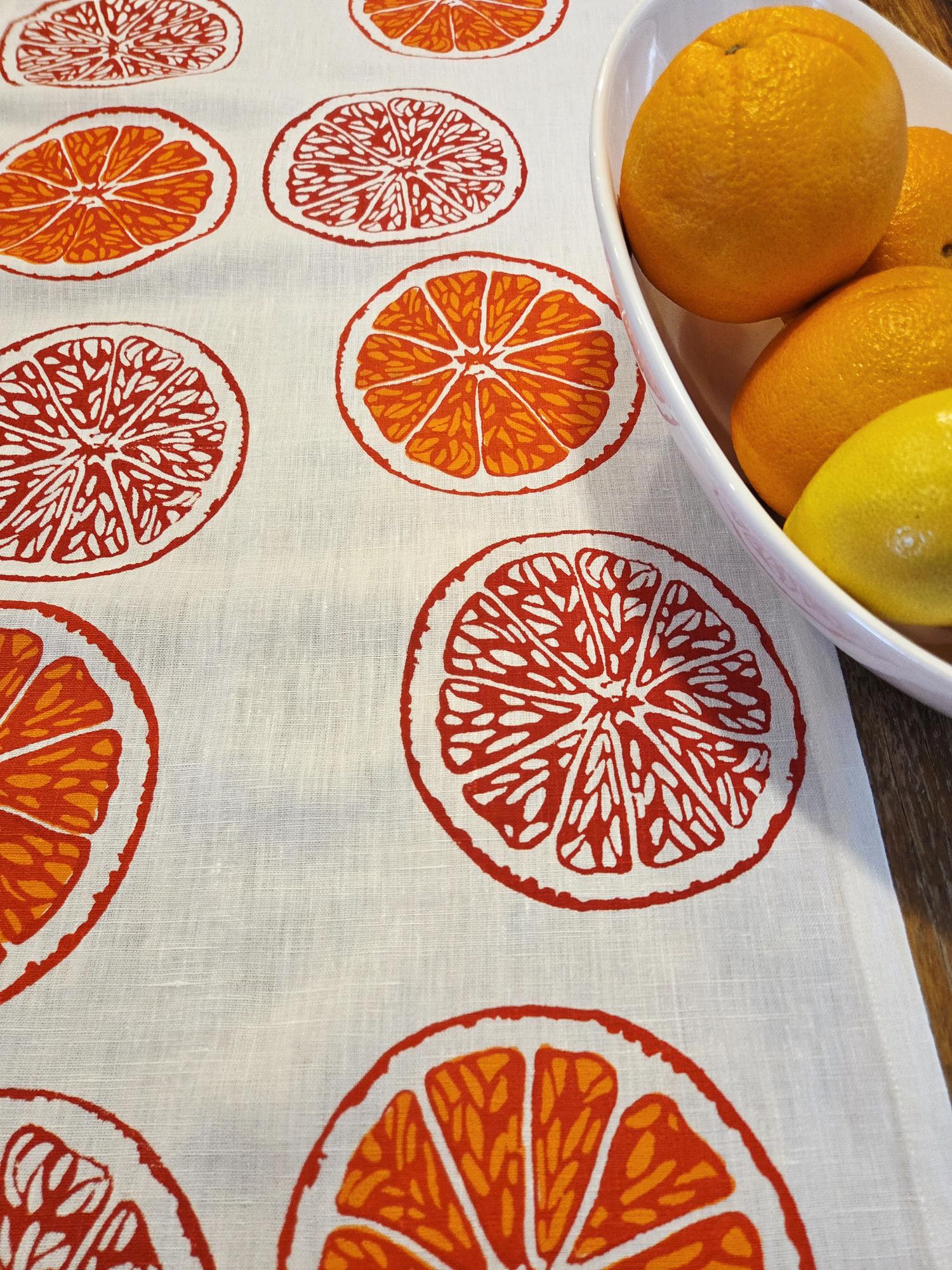 Hand Screen Printed Linen Tea Towels – Oranges & Oranges