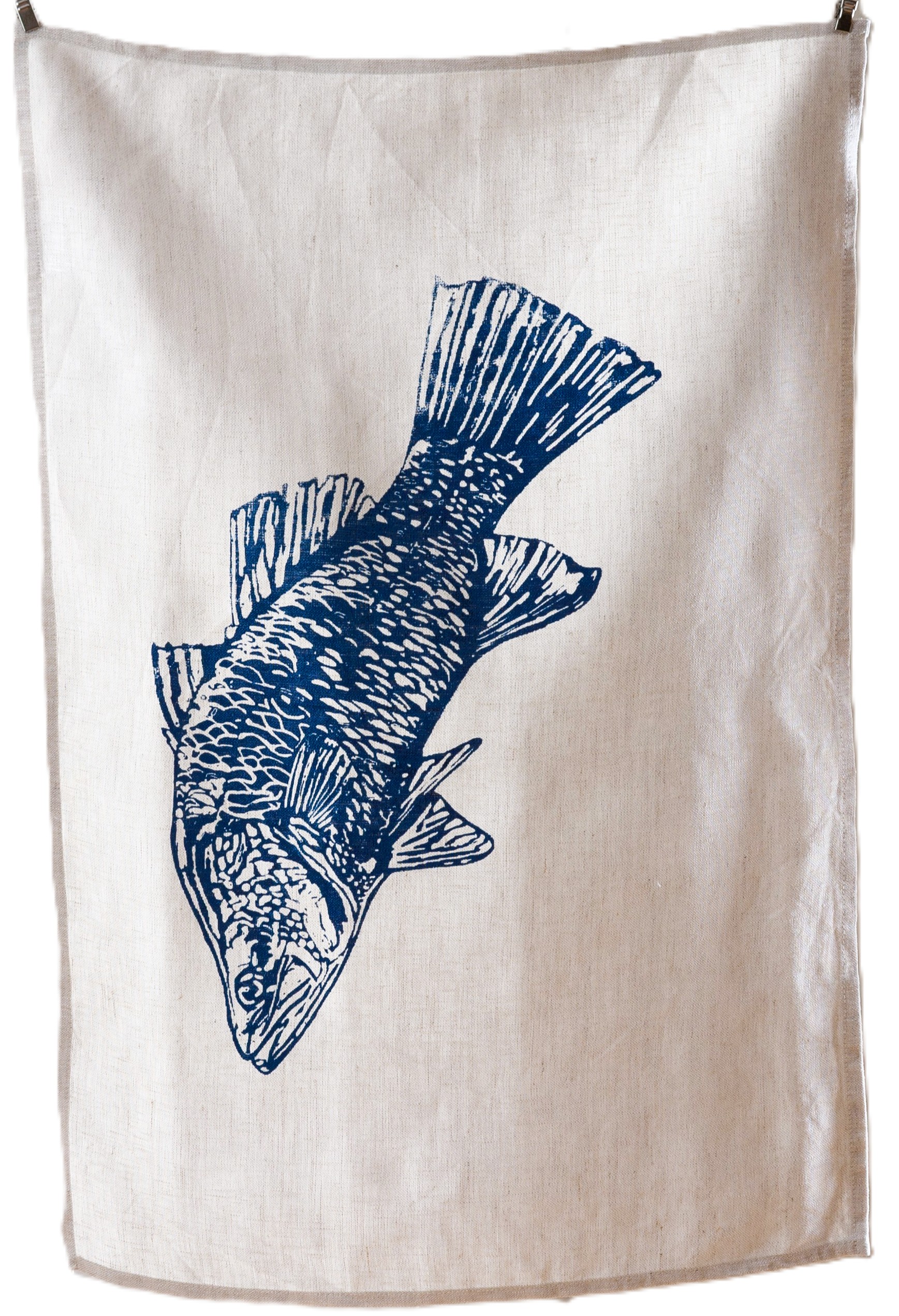 Hand Screen Printed Linen Tea Towel -Australian Barramundi