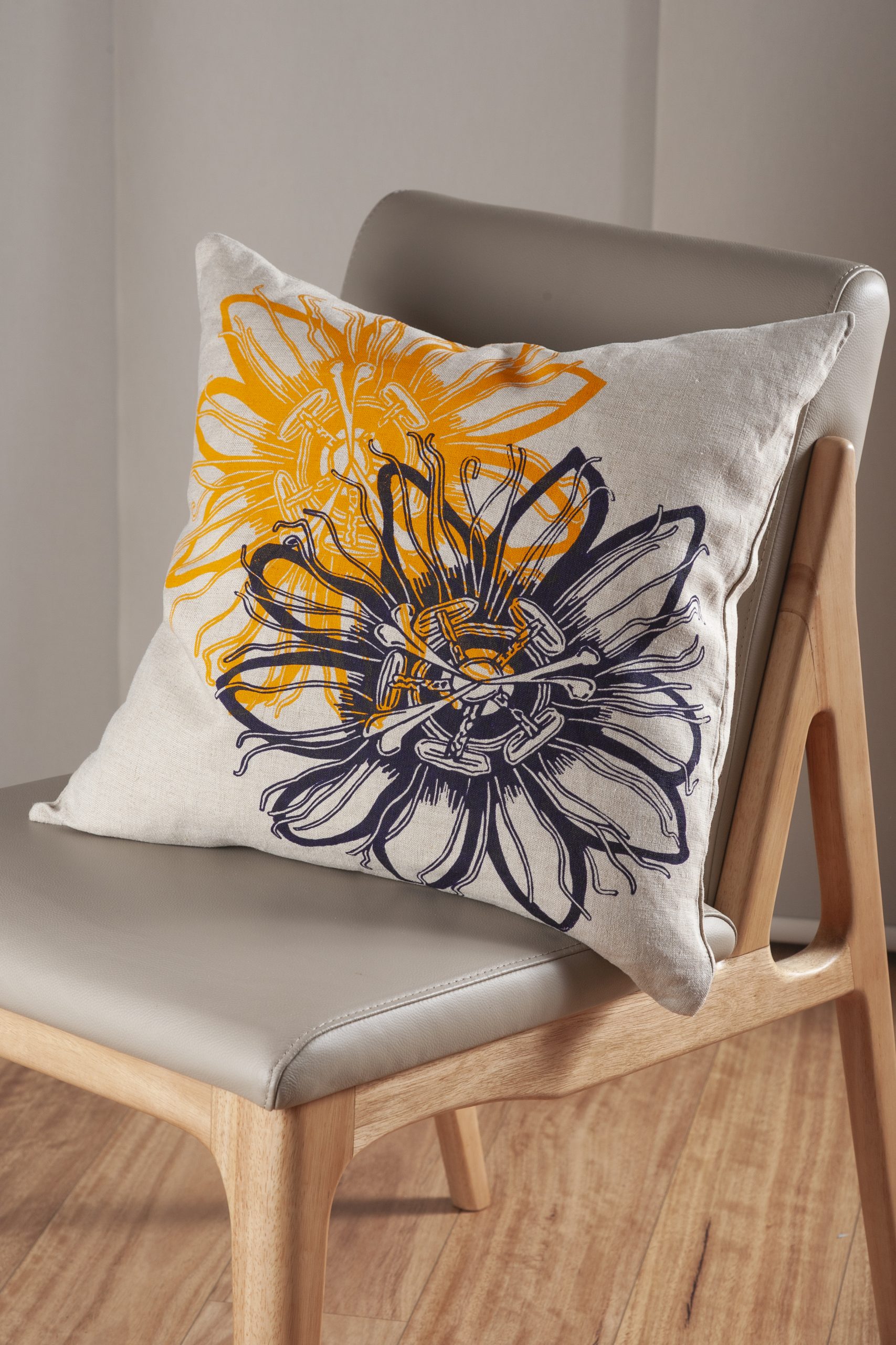 Hand Screen Printed Linen Cushion Covers – PassionflowerDescription