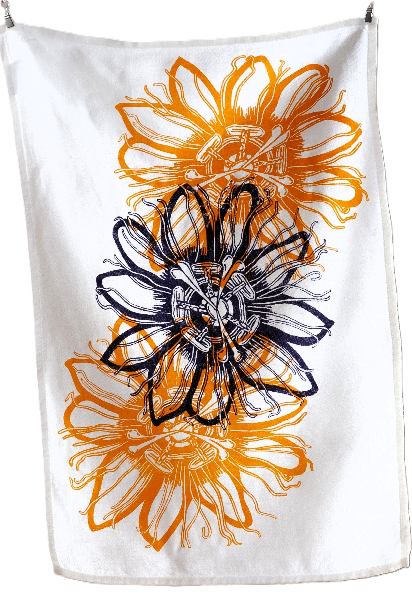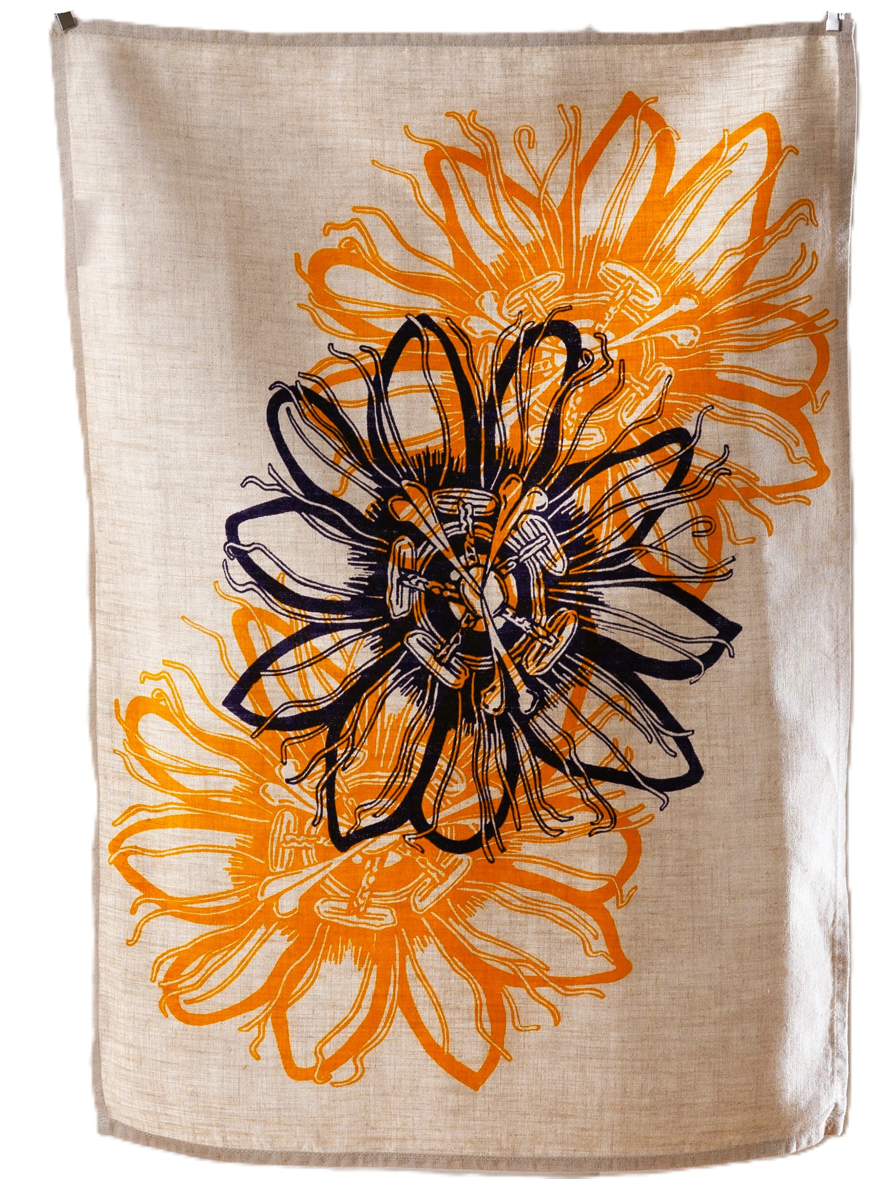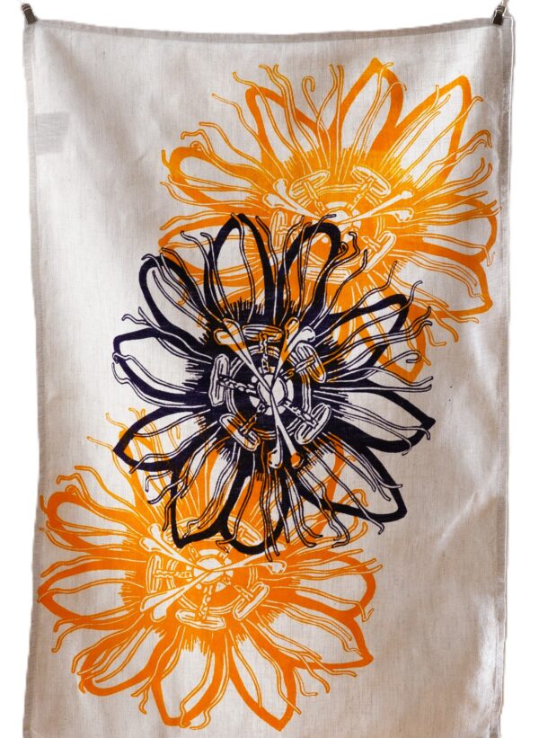 Hand Screen Printed Linen Tea Towel – Passionflower
